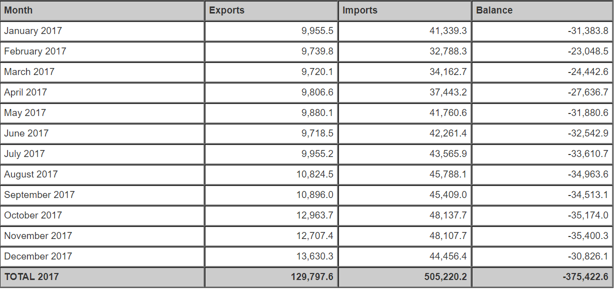 This graph is a clear depiction of the losses that the US government were running in 2017 and the whole trade war started in order to cut down this huge trade gap.